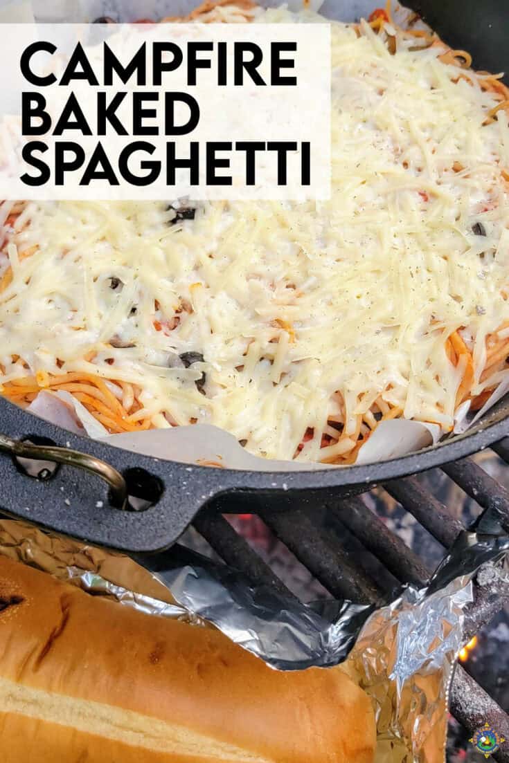 Bake Dutch Oven Spaghetti over the campfire is a comforting meal. Add a loaf of bread and fill many happy camper tummies!