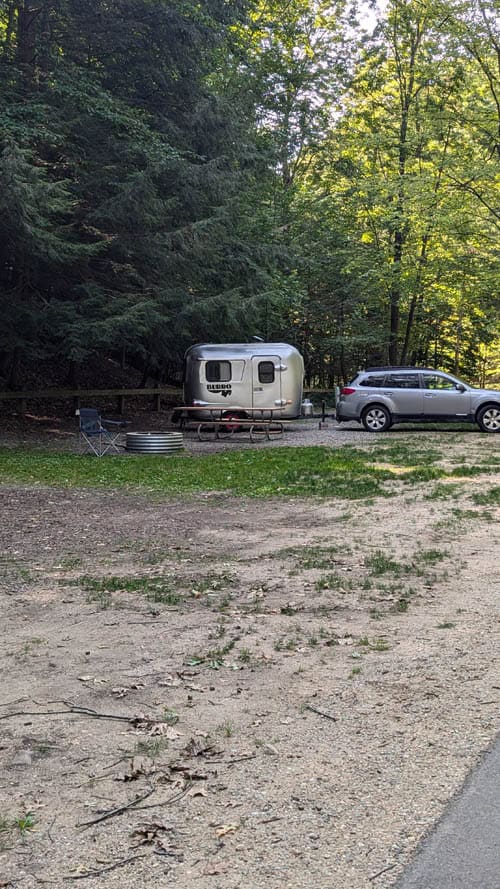When I arrived, I realized my cord was not long enough to reach site 44, so I moved to site 74. This site was pretty level, but many are unlevel, so bring leveling blocks.