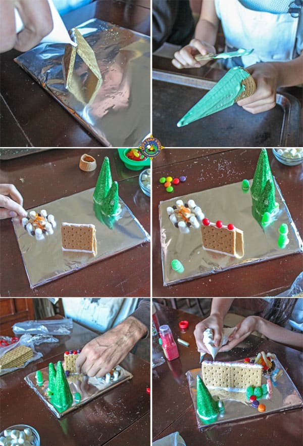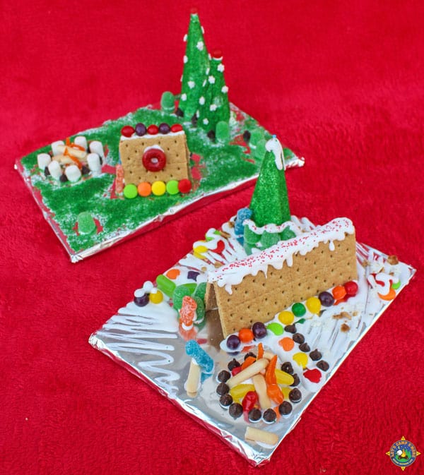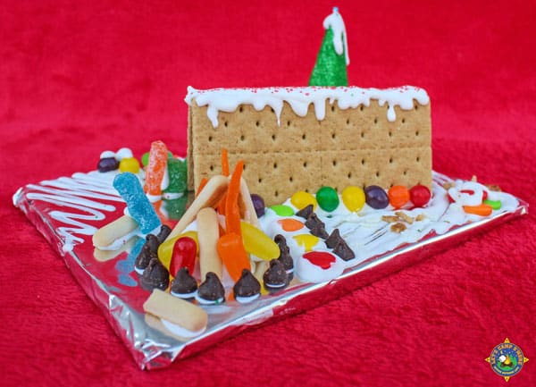 Have you ever made a gingerbread house? You can use graham crackers like this to create your own style or buy an inexpensive kit to decorate. We’ve seen a trailer gingerbread kit in stores. We recommend that you buy extra candy because the kits have a small amount.