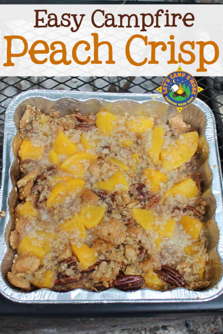 Enjoy this easy peach crisp baked over the campfire or on a grill.